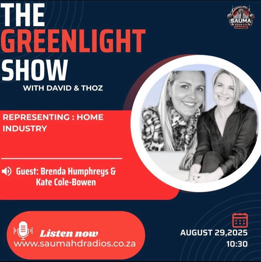 Home-Industry was recently featured on The Green Light Show with Sauma HD Radio, where founder Kate Cole-Bowen and business development manager Brenda Humphreys shared the story of the brand’s humble beginnings and steady growth. The discussion explored what makes Home-Industry unique — its ability to balance locally made and internationally sourced products, while curating collections with intention and care.